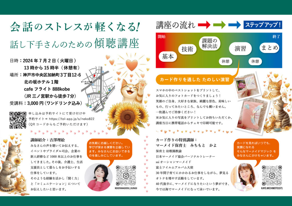 ご相談いただいた内容をもとに傾聴講座を実施します。